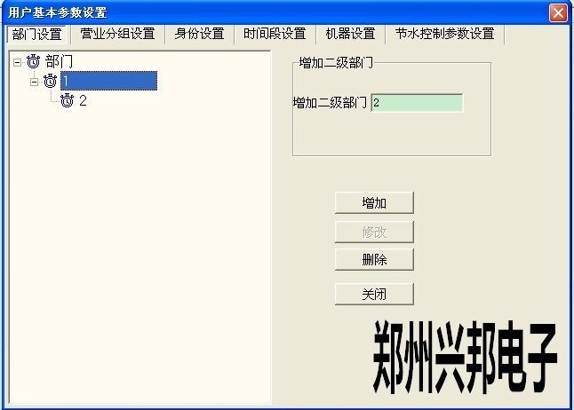 打開485售飯機軟件--系統(tǒng)管理--用戶參數(shù)設置--用戶基本參數(shù)設置--部門,打開后點擊部門,可以添加一級部門,然后再把光標點到一級部門上,此時可以添加二級部門,如下圖所示