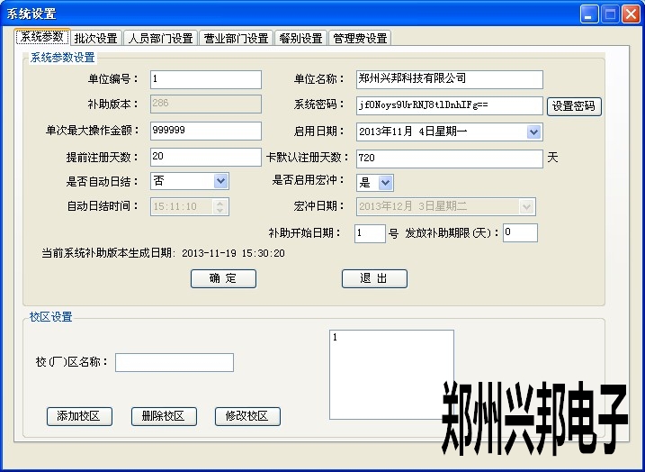 7) 提前注冊天數:用售飯機注冊卡的有效期時可以提前注冊的天數,天數不能大于30天。