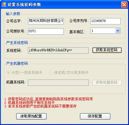 2.軟件重裝后要將系統設置中系統密碼重新設置,如下圖所示,輸入公司名字、序列號、授權后和扇區號,獲取系統密碼,然后保存配置;