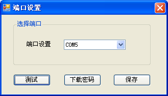 2)打開端口設置后選擇端口號,然后點擊測試,下載密碼,保存,測試成功讀卡器會響一聲
