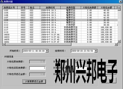 Ø 單擊【讀卡】,在記錄表中單擊選擇消費(fèi)錯(cuò)誤的那條記錄,輸入應(yīng)該消費(fèi)扣除的實(shí)際大錢包及補(bǔ)助金額,