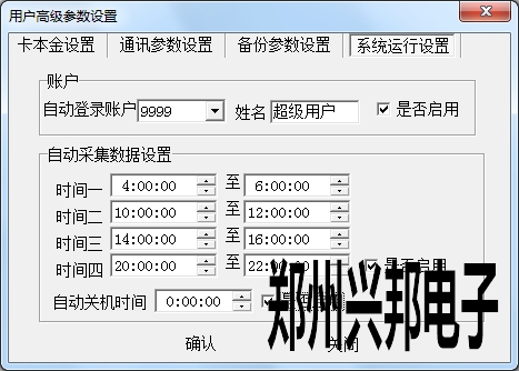 在使用興邦一卡通平臺進行用戶高級參數設置時包含卡本金設置、通訊參數設置、備份參數設置和系統運行設置四個參數設置。
