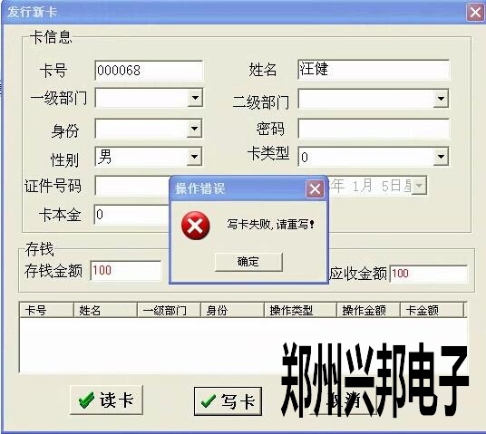 問(wèn)題描述:客戶用的485食堂售飯機(jī)軟件,軟件可以正常打開(kāi),正常讀卡,客戶卡也能正常使用,發(fā)行新卡,存款時(shí)讀卡的時(shí)候是正常的,但是在寫(xiě)卡的時(shí)候一直提示寫(xiě)卡失敗,請(qǐng)重寫(xiě)!