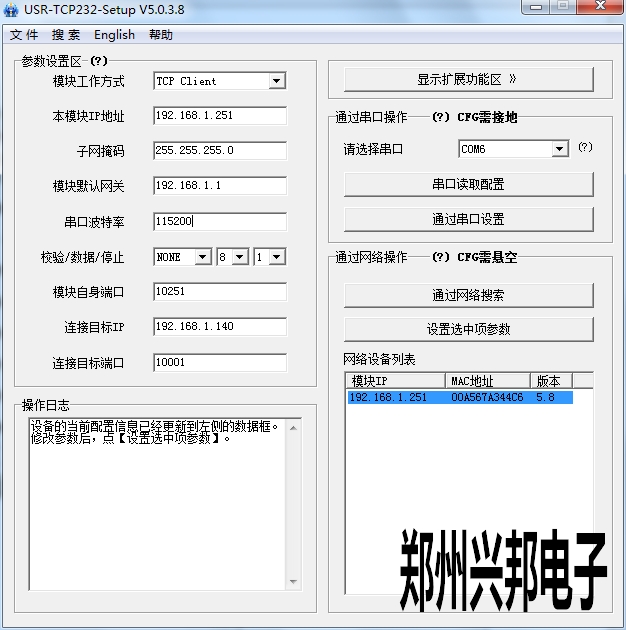 5. 模塊自身端口取所填本地ip地址的最后一空的數字,比如所填IP為192.168.1.251那么該端口就是10251。